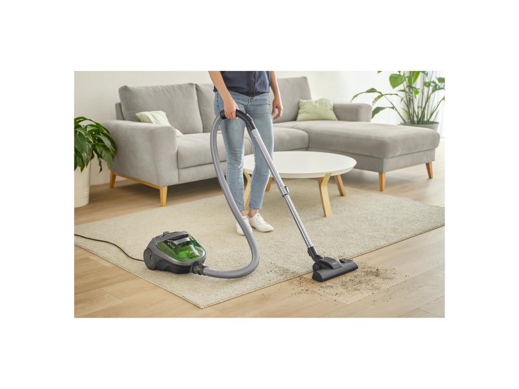 Hygienická údržba: Zapomeňte na kupování sáčků. Nádoba na prach o objemu 1,5 l je plně omyvatelná, což usnadňuje udržování vysavače v perfektní čistotě.