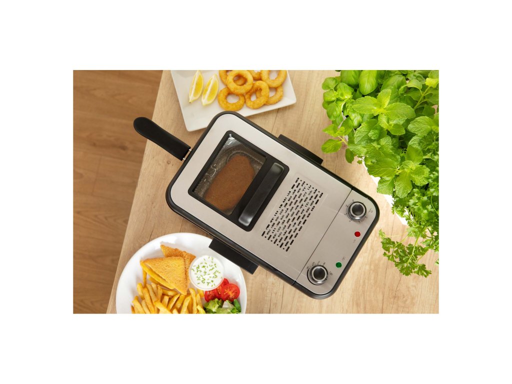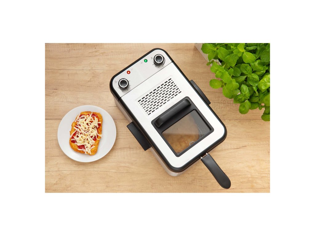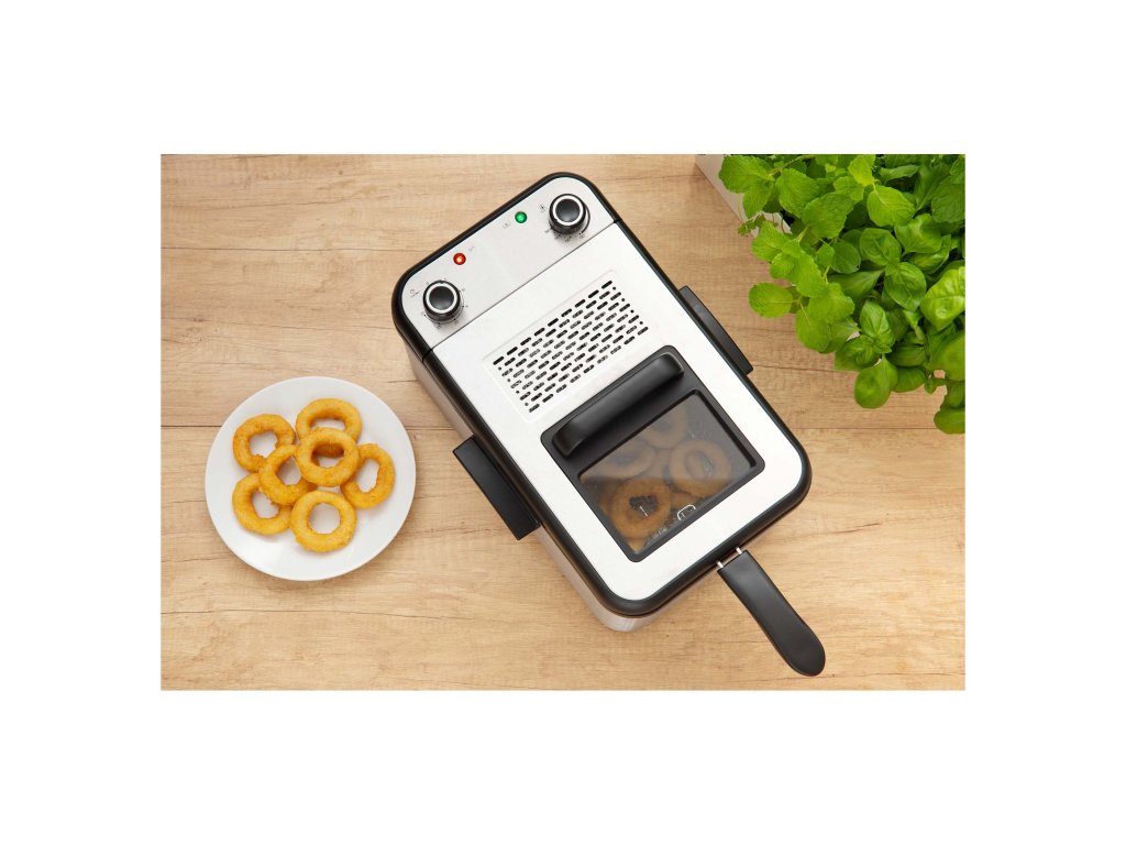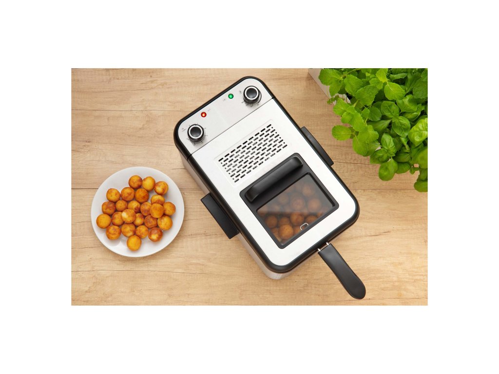 Dokonalý přehled: Nerezové víko je vybaveno praktickým průzorem, takže můžete sledovat stav připravovaného jídla, aniž byste museli fritézu otevírat a vypouštět teplo.