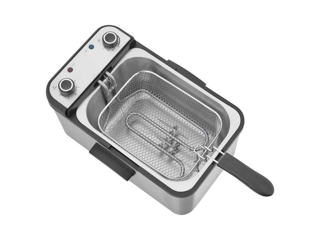 Bezpečnost a komfort: Rukojeť fritovacího koše má studený povrch pro bezpečnou manipulaci. Fritéza disponuje také pojistkou proti přehřátí a chytrým držátkem pro efektivní odkapání přebytečného oleje po smažení.