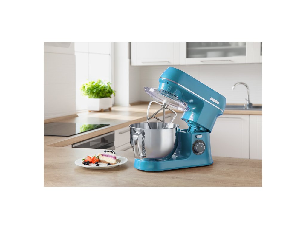 Planetární systém hnětení: Hlavice rotuje kolem své osy i kolem osy převodovky zároveň, čímž zajišťuje dokonalé promíchání všech ingrediencí v míse bez hrudek a zbytků na stěnách.
