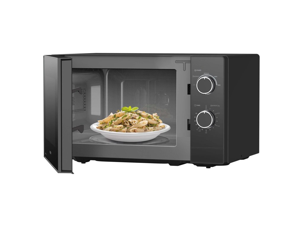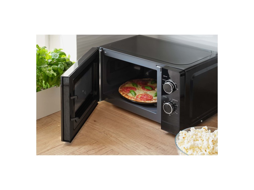 Tato mikrovlnka s objemem 20 litrů nabízí dostatek prostoru pro větší misky (až do průměru 25,5 cm) a její smaltovaný interiér zaručuje snadné čištění. Pouze dva ovládací knoflíky zajistí intuitivní ovládání – ideální pro všechny, kteří hledají rychlost a jednoduchost.