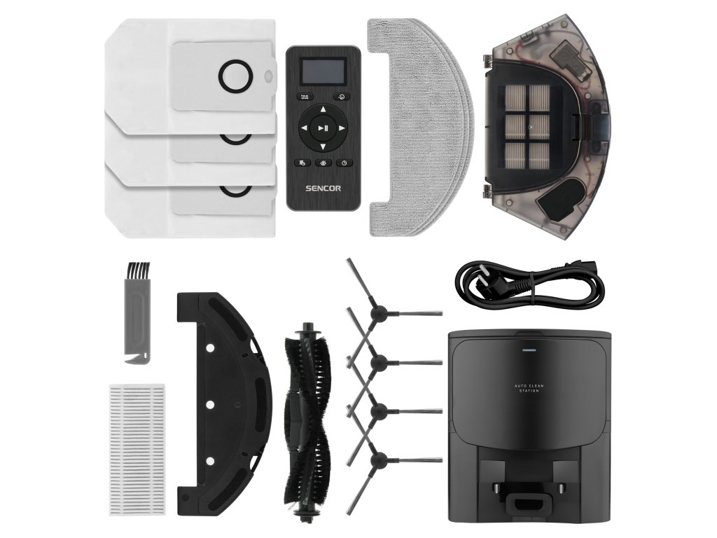 ✅ Robotický vysavač včetně filtrů ✅ Nabíjecí stanice s prachovým sáčkem ✅ Mopovací nástavec + 3 mopovací návleky ✅ Dálkový ovladač + 2 AAA baterie ✅ Náhradní boční kartáče, HEPA filtr, molitanový filtr ✅ Síťový adaptér, čisticí kartáček