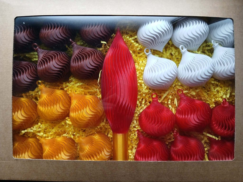 🌟 3D Tištěná Vánoční Špice a Ozdoby s Vlnkovým Vzorem (PETG)