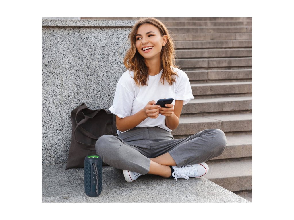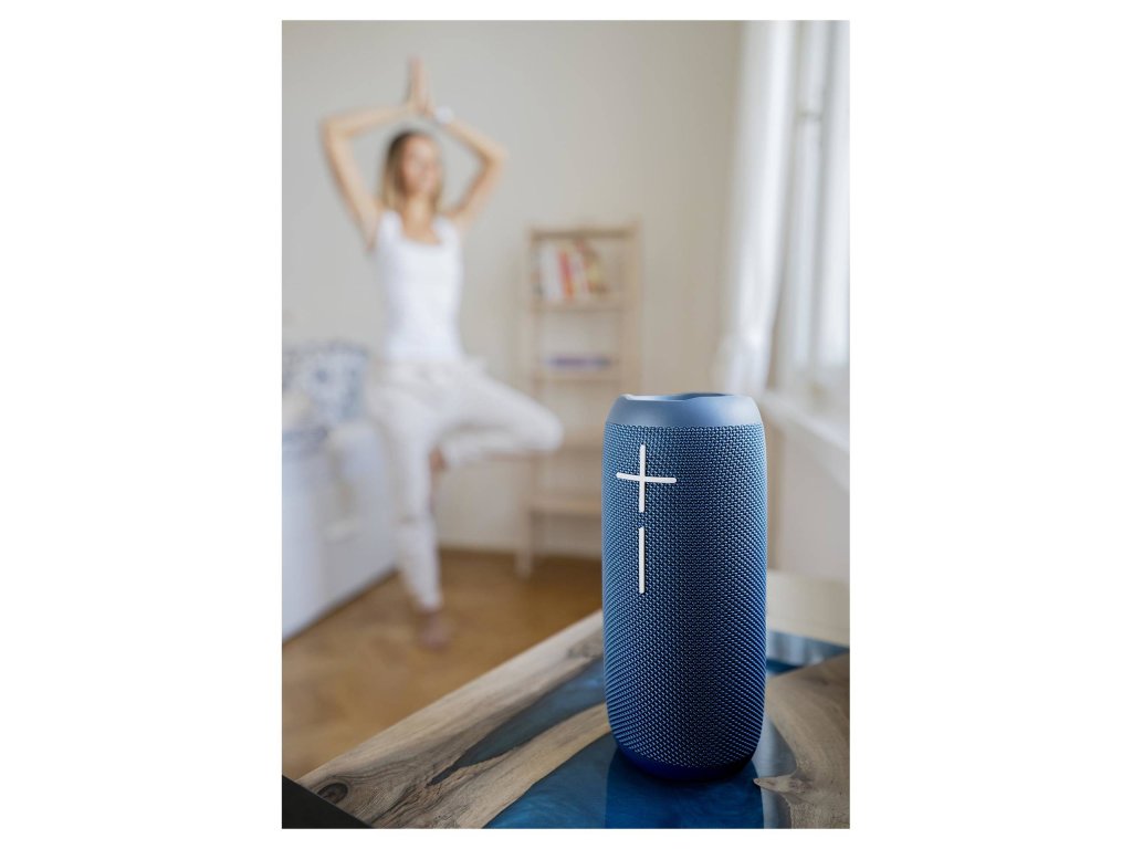 S Bluetooth V5.0 se můžete vzdálit od zdroje hudby až na 15 metrů, což je dostatečná vzdálenost na to, abyste si mohli v klidu dojít pro další občerstvení, aniž byste přišli o rytmus. A k tomu všemu je ještě trendy – potažený modrou prémiovou tkaninou.
